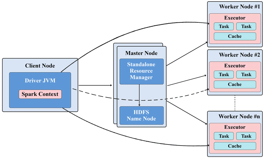 * client mode: 실행을 호출한 곳(client)에서 spark driver 를 생성